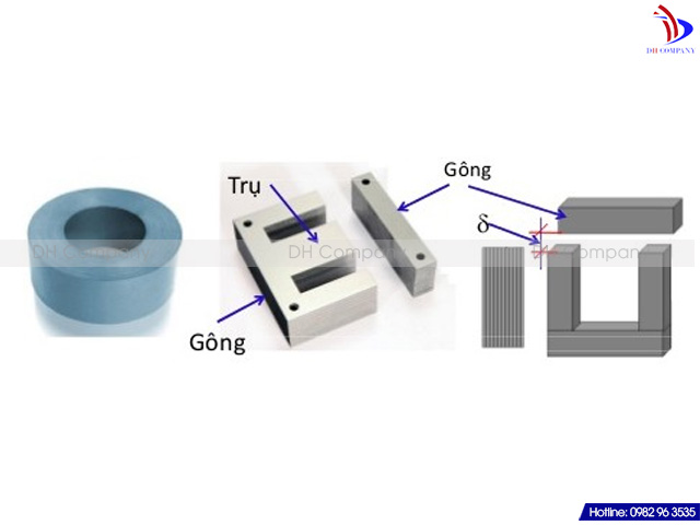 Lõi thép gồm 2 phần gồm Trụ và Gông. Trụ là phần để đặt dây quấn còn Gông là phần nối liền giữa các trụ để tạo thành mạch từ kín.