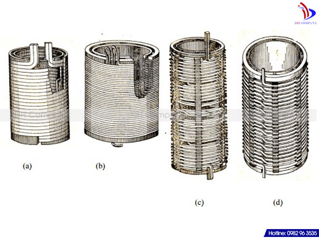 – Dây quấn hình xoắn ốc liên tục, dùng cho dây quấn cao áp, tiết diện dây dẫn chữ nhật (hình 4c).